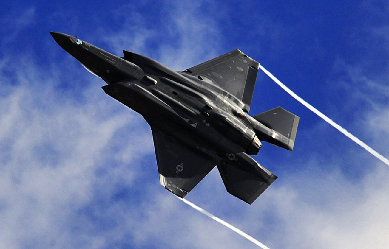 An F-35 Lightning II performs a maneuver Sept. 12, 2016 over Luke Air Force Base, Ariz. This sortie marks the 10,000th flying hour for the F-35 program at Luke. (U.S. Air Force photo by Senior Airman Devante Williams)